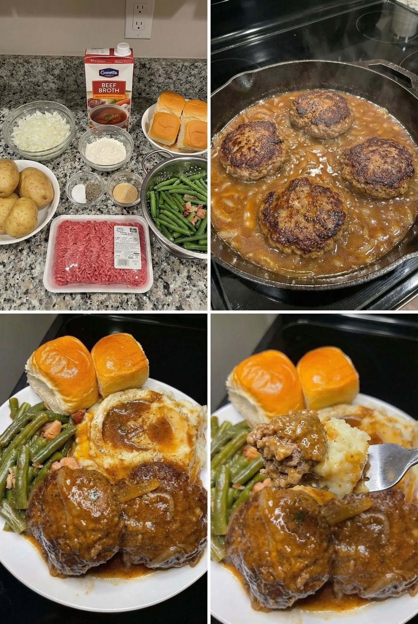 Simmer and stir over medium-low heat for about 5 minutes, until the gravy thickens. Turn heat to low, return patties to the gravy, cover, and simmer for another 15 minutes. Serve with a big bowl of mashed potatoes