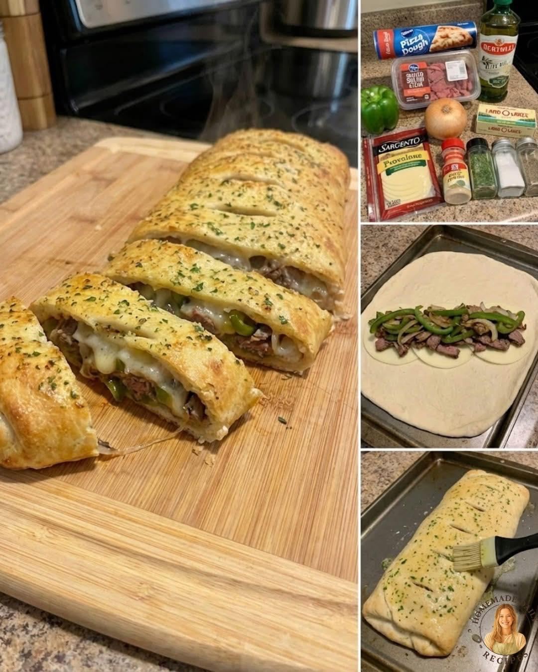 Golden, crispy pizza dough wrapped around juicy steak, sautéed peppers and onions, and melty provolone cheese—this Philly Cheesesteak Stromboli is the ultimate comfort food mashup. It’s cheesy, savory, and perfect for dinner, game day, or sharing with friends. 😋