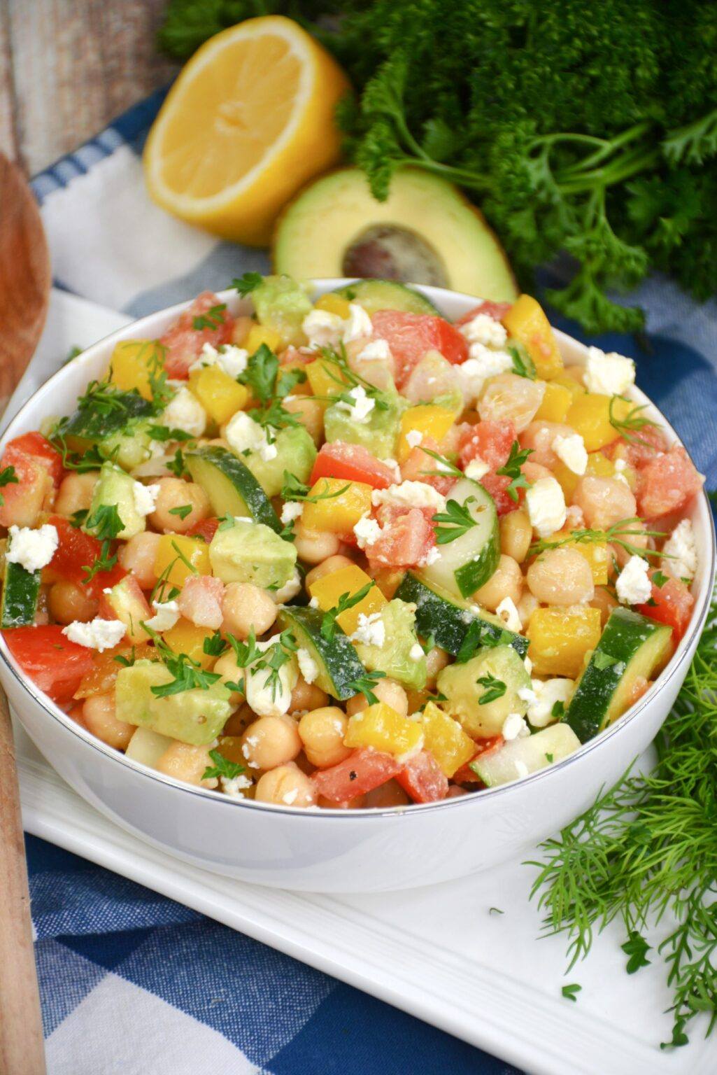 This Skinny Greek Chickpea Salad makes a wonderful summer side dish or appetizer.Salads