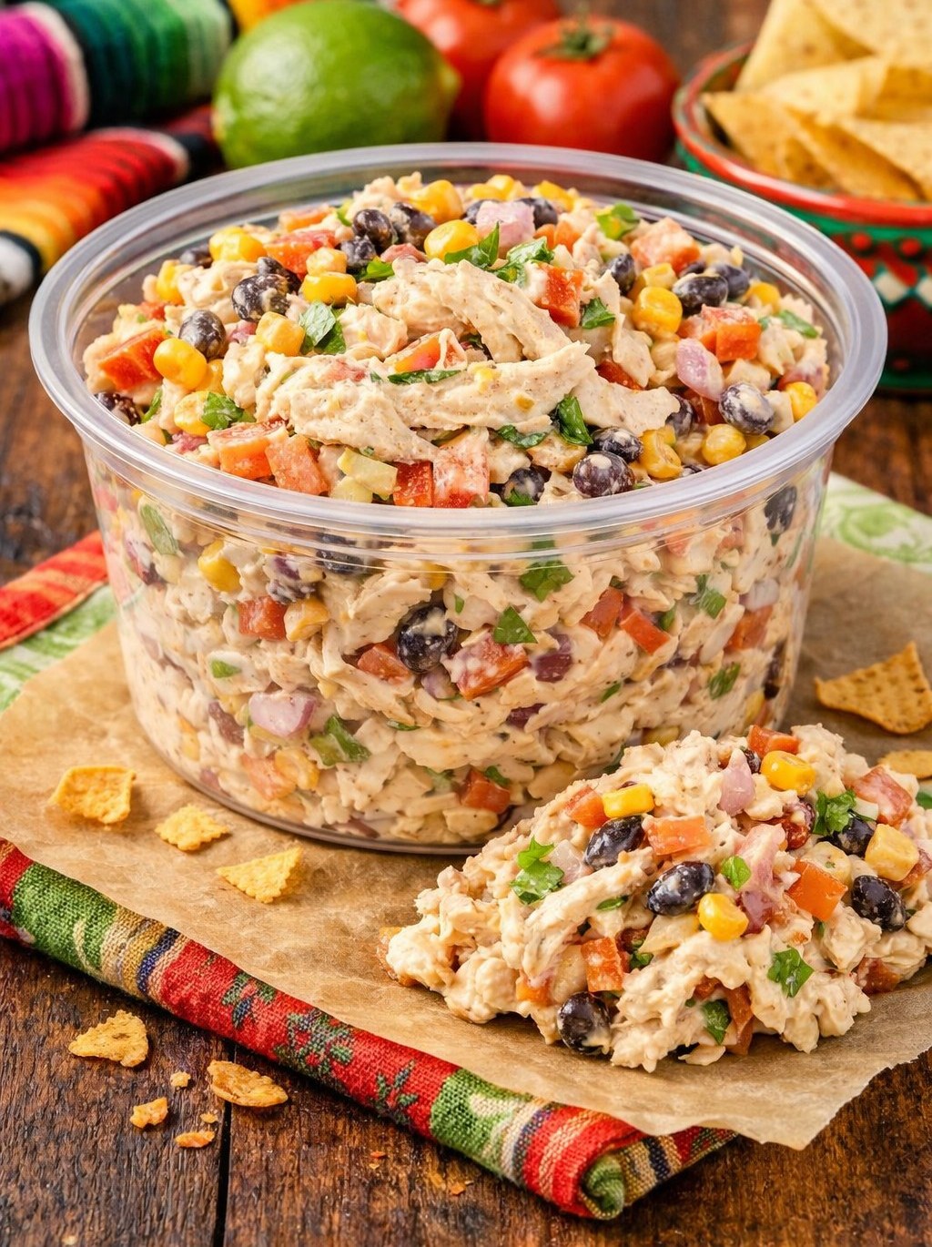 Southwest Chicken Salad is a delicious cold chicken salad with a southwest flair. Made with shredded chicken, sour cream, southwest spices, lime juice, black beans, corn and more. A great southwestern chicken salad for a light lunch or dinner.