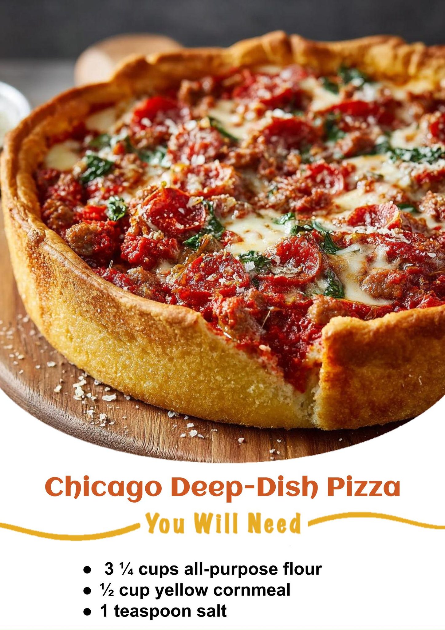 Chicago deep-dish pizza has a tender golden crust, gooey layers of cheese, flavorful sausage, and a rich tomato sauce that makes every bite hearty and unforgettable. This classic, baked in a high-sided pan, transforms your kitchen into a pizzeria and draws everyone to the table.
