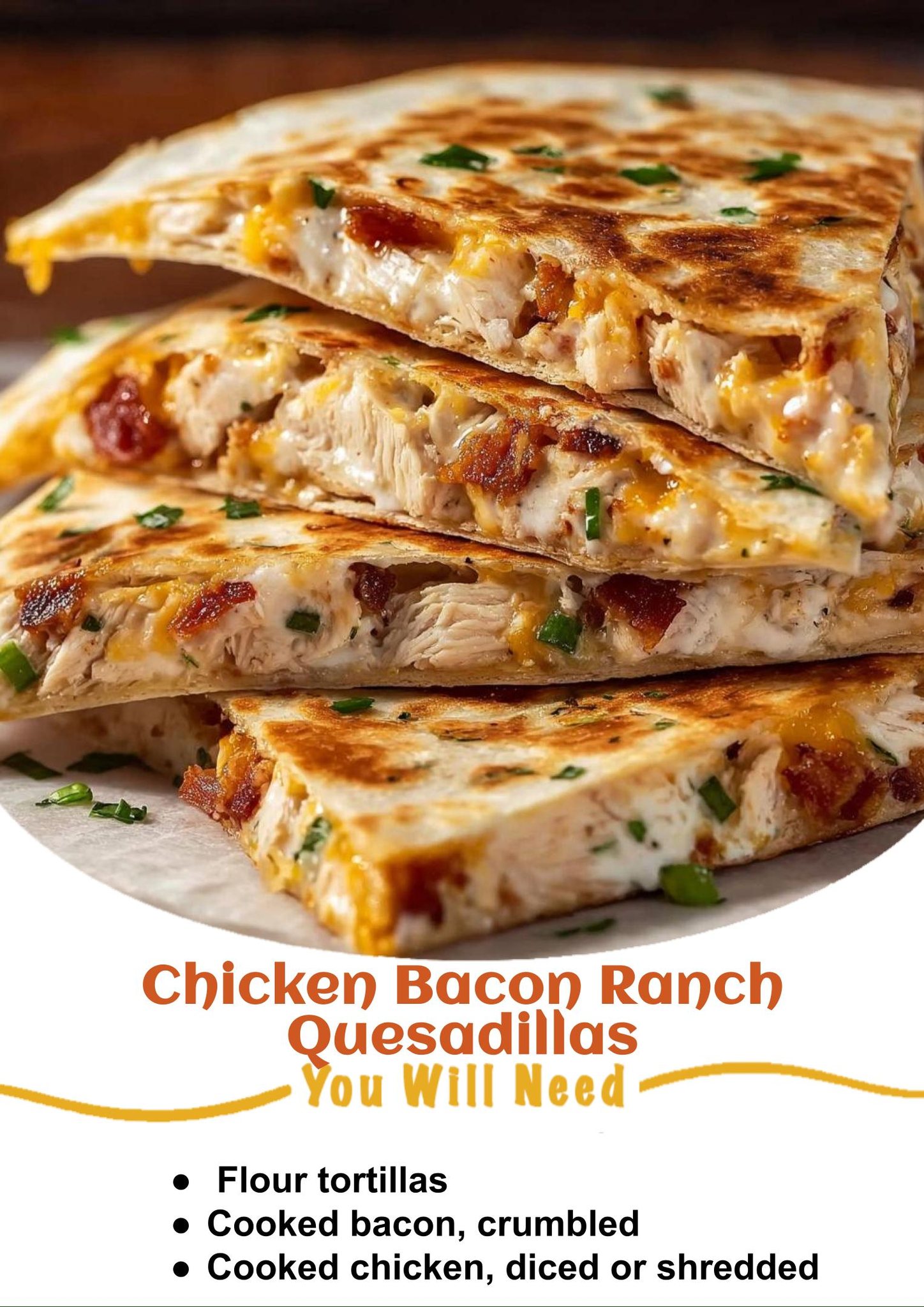 Everything about these quesadillas is cozy and crowd pleasing. The combination of cheese, smoky bacon, ranch, and tender chicken makes this an instant family hit.