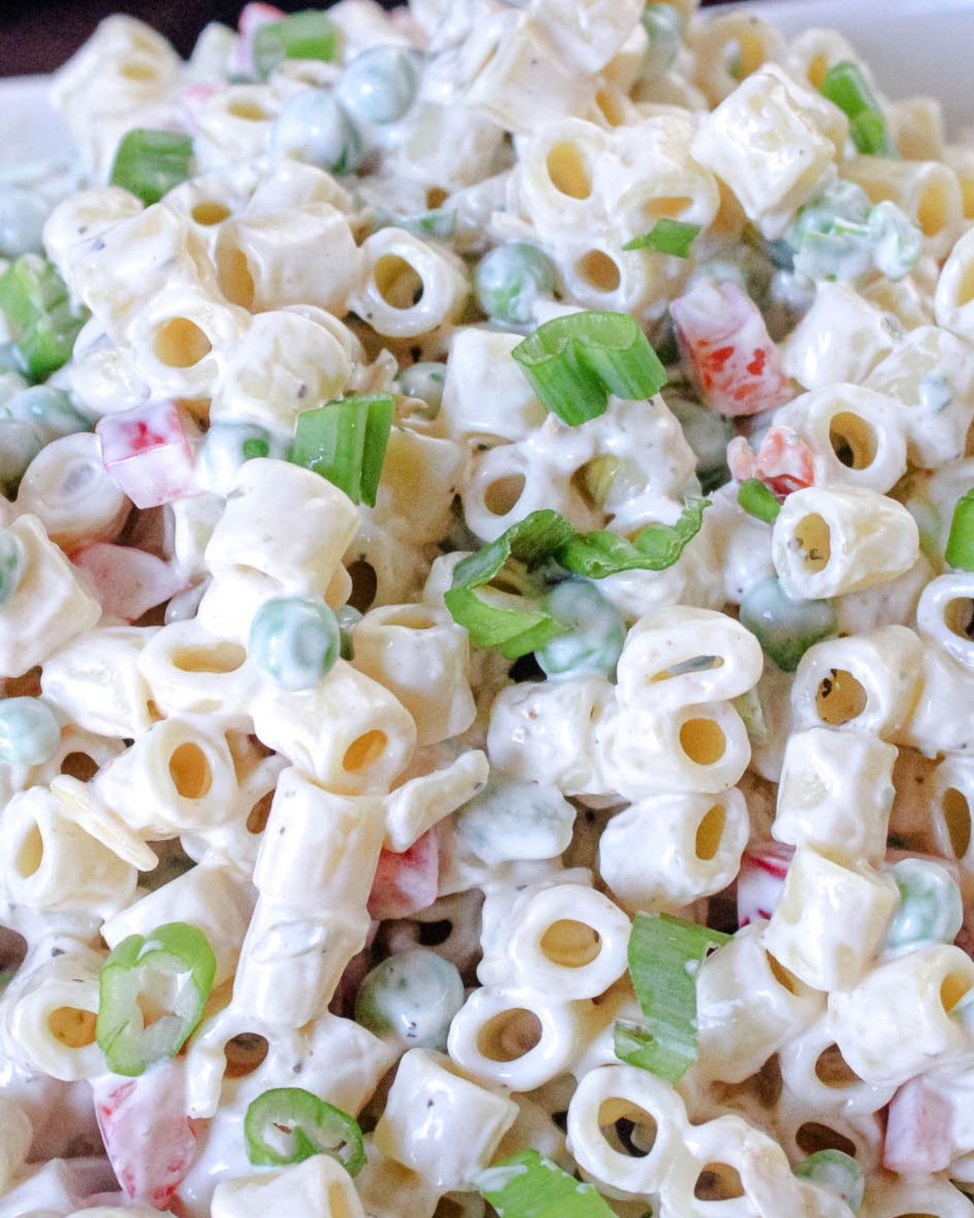 A fantastic and basic macaroni salad for just about any occasion. What makes this is a little different is the dressing. Mixing mayo and sour cream make this sweet and tangy at the same time. Then, the Knorr vegetable mix adds a ton of flavor to the dressing. Fresh veggies not only add flavor but a little crunch. The peas may have been our favorite. Their pop of sweetness is a nice contrast to the other ingredients. A great addition to your summer cookout menu.