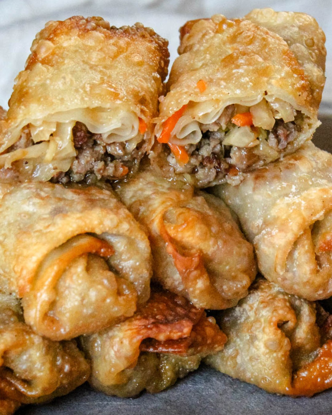 If you're not near a Chinese restaurant or don't feel like grabbing take-out, make these homemade egg rolls. They're full of meat and veggies. Once fried, the outside is very crisp. Serve with your favorite dipping sauce for the ultimate snack or appetizer