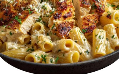 This dish features rigatoni pasta dressed in a luxuriously smooth Alfredo sauce enriched with Velveeta, Parmesan, mozzarella, and cream cheese.…