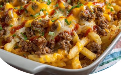 This hearty creation layers seasoned ground beef and sautéed onions beneath crispy shoestring fries, all smothered with creamy mushroom and…
