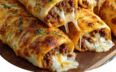 Cheesy Taco Breadsticks Delight brings together taco-seasoned ground beef and melty cheese sticks, all wrapped in fluffy pizza dough. The…