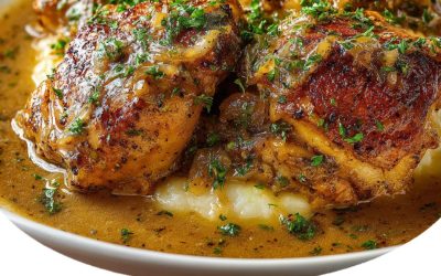 This dish features succulent bone-in chicken thighs, seasoned generously and seared to golden perfection before being enveloped in a luscious,…