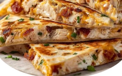 Savor crispy tortillas packed with tender chicken, smoky bacon, gooey cheese, and creamy ranch dressing. This quesadilla is made in…