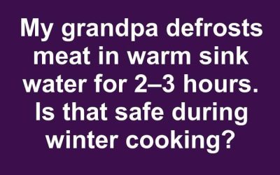 My grandpa defrosts meat in warm sink water for 2–3 hours. Is that safe during winter cooking?